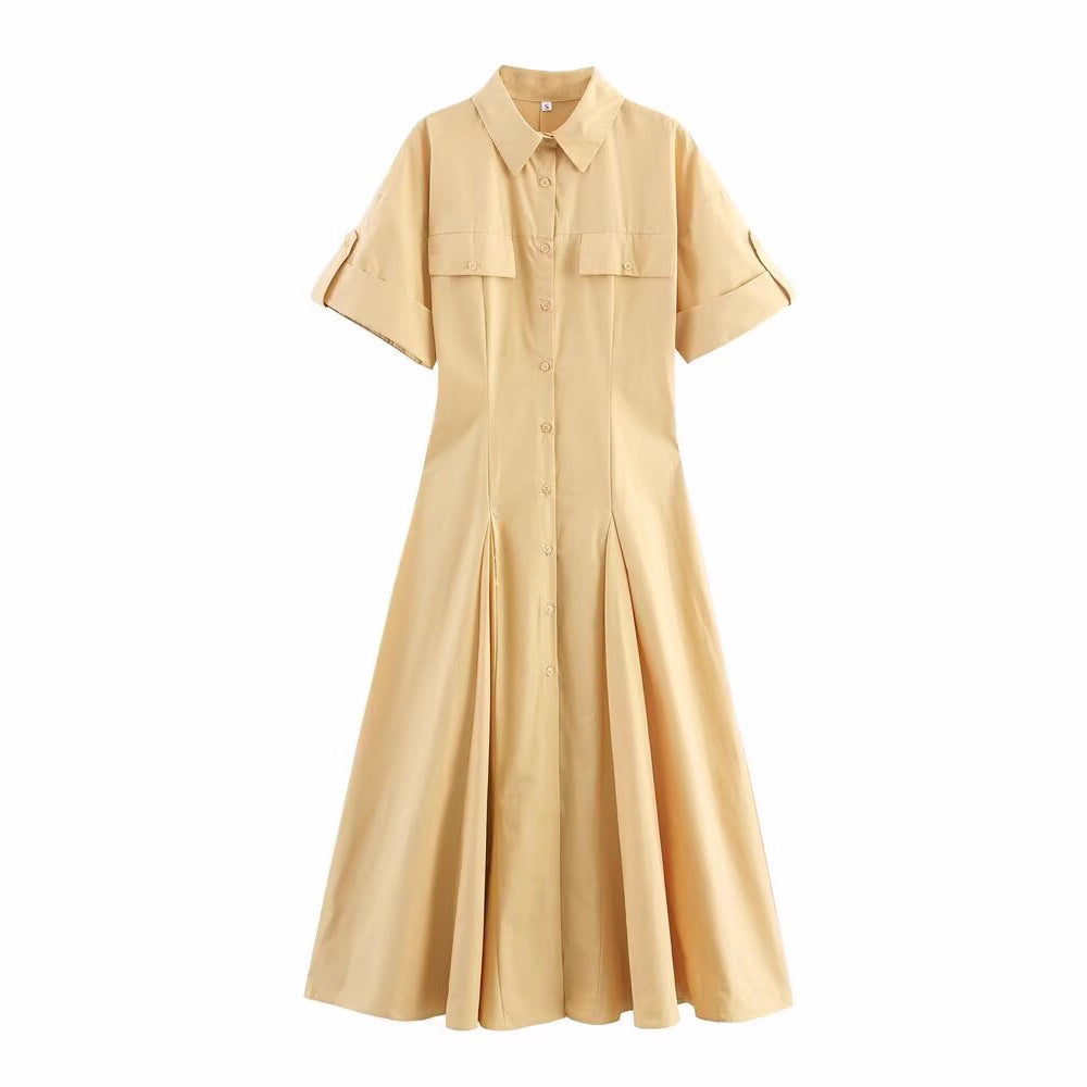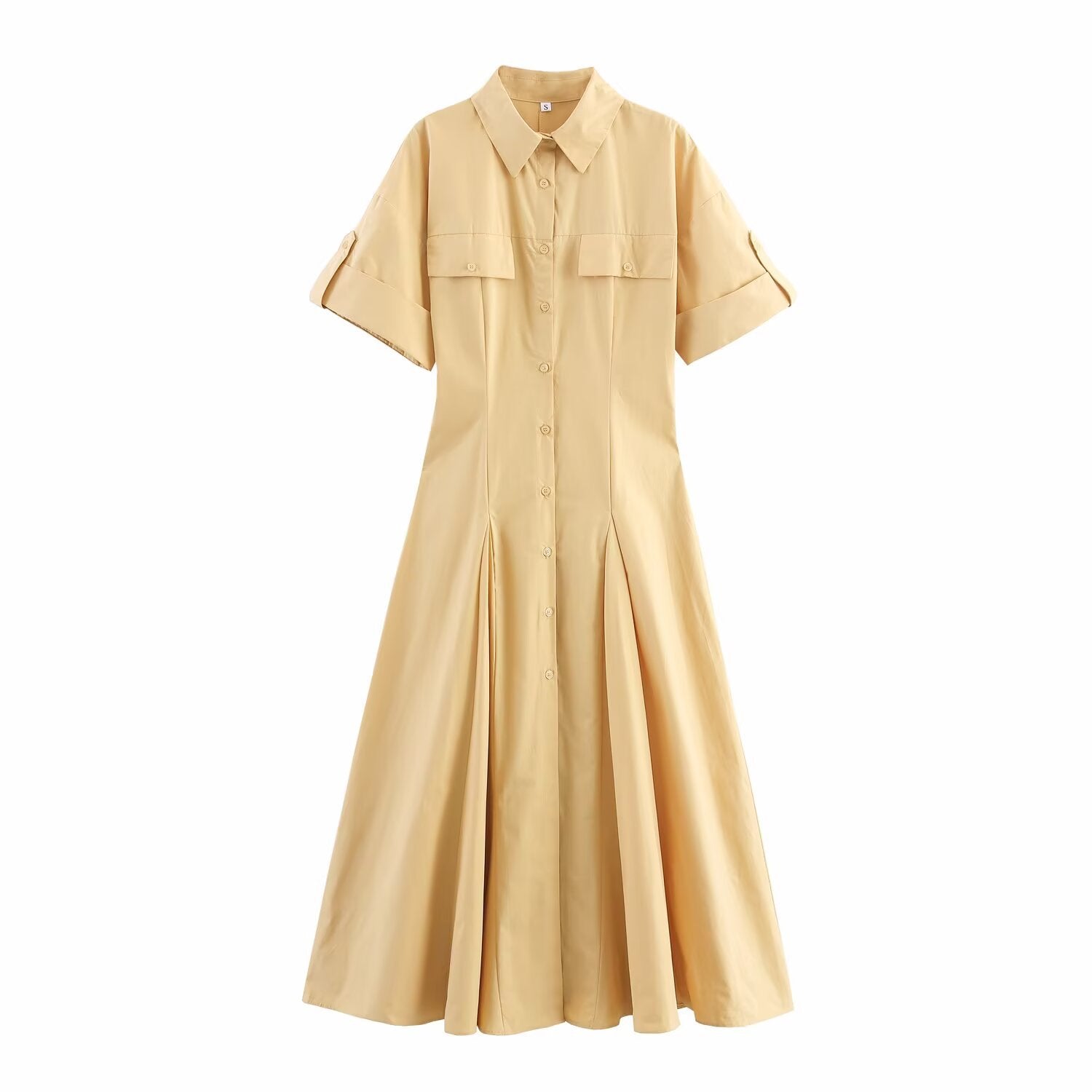 Sukienka koszulowa damska z detalami na guziki i zwiewnym dołem Eloura-Moda