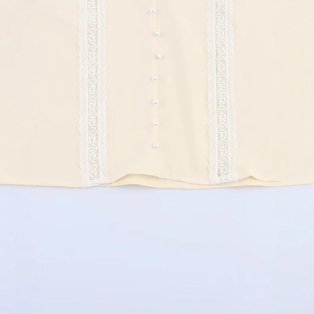 - Szczegóły: Delikatne koronkowe ozdoby wzdłuż plisy guzika i na rękawach nadają stylowy wygląd.