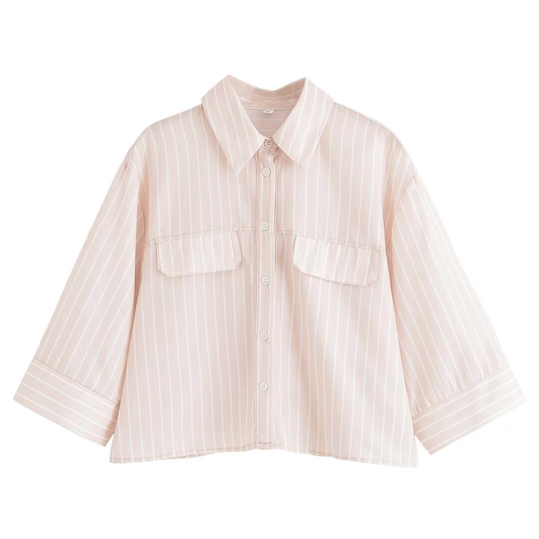 Damska bluzka w paski o oversizowym kroju z praktycznymi kieszeniami Eloura-Moda