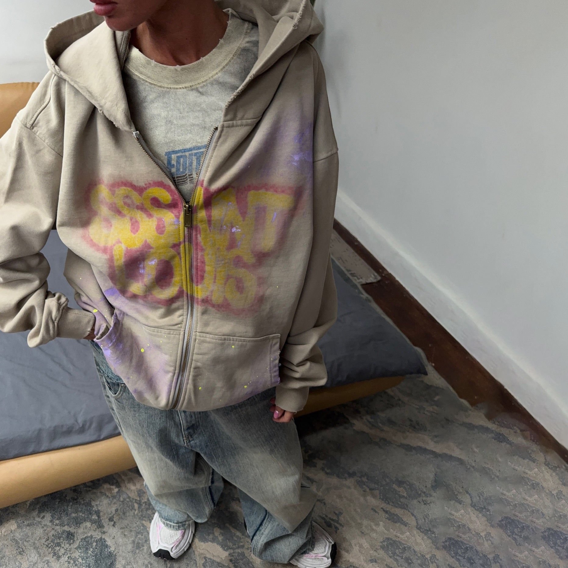 Doświadcz komfortu i stylu w jednym z Eloura-Moda Graffiti-Zipper Hoodie – niezbędnik dla każdej modnej kobiety!