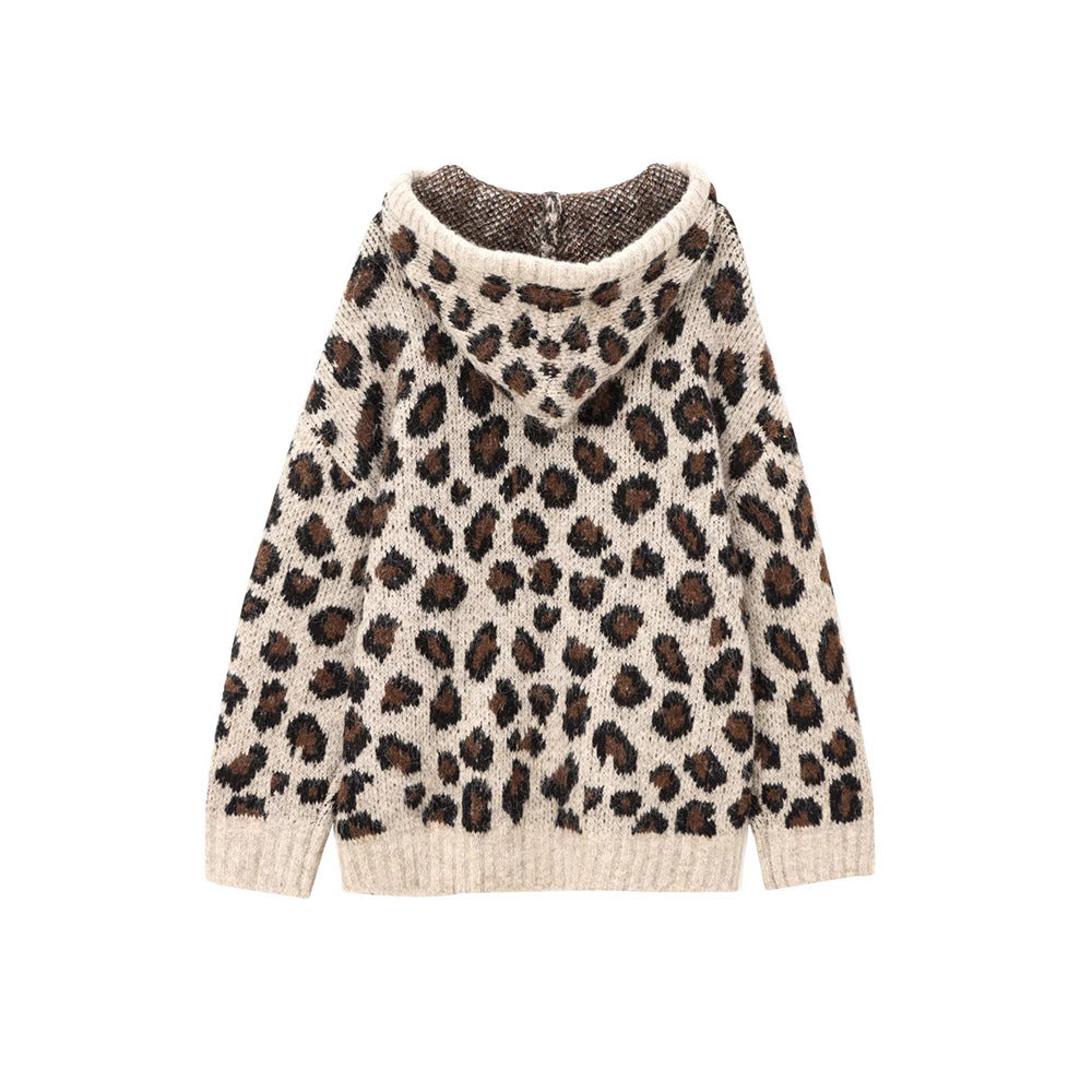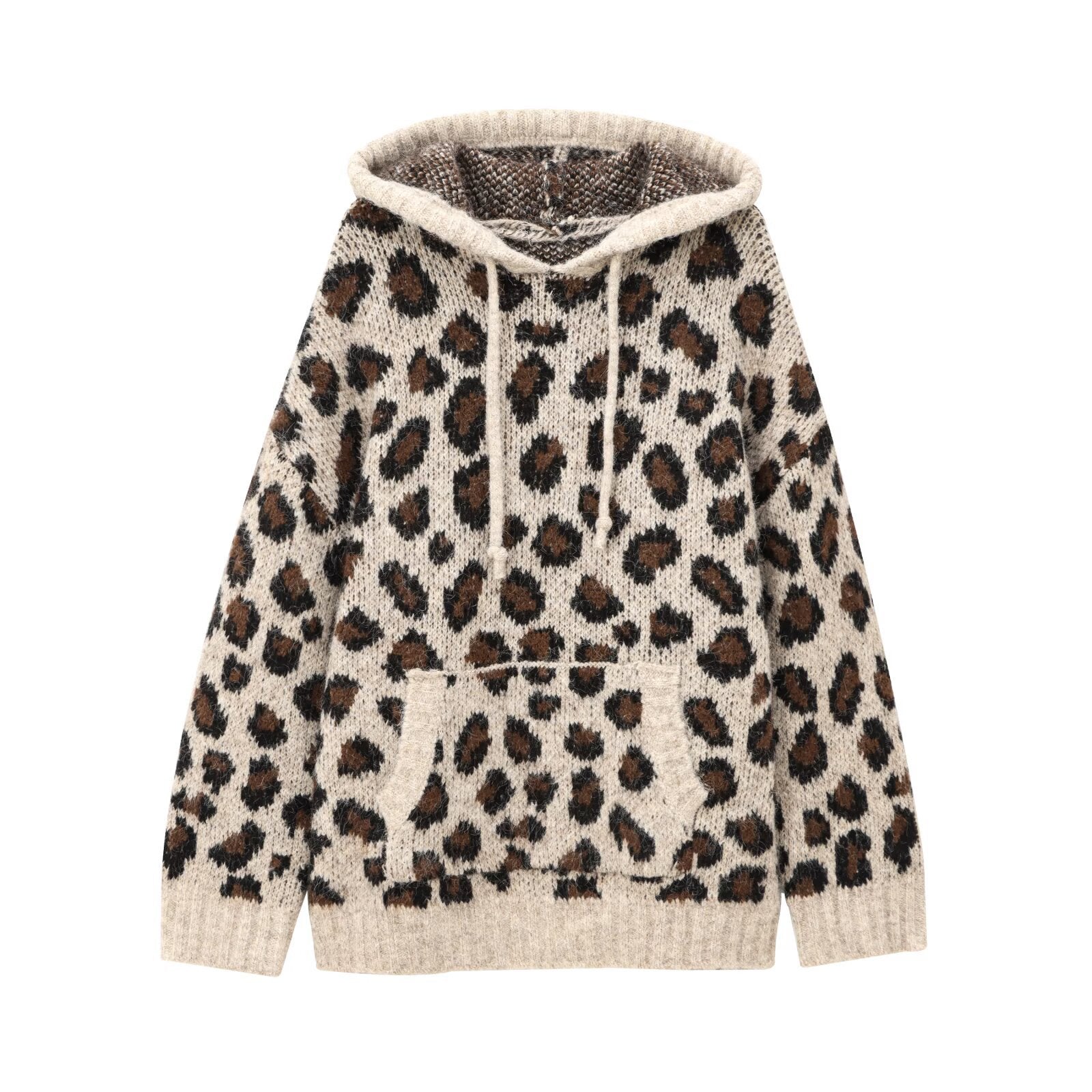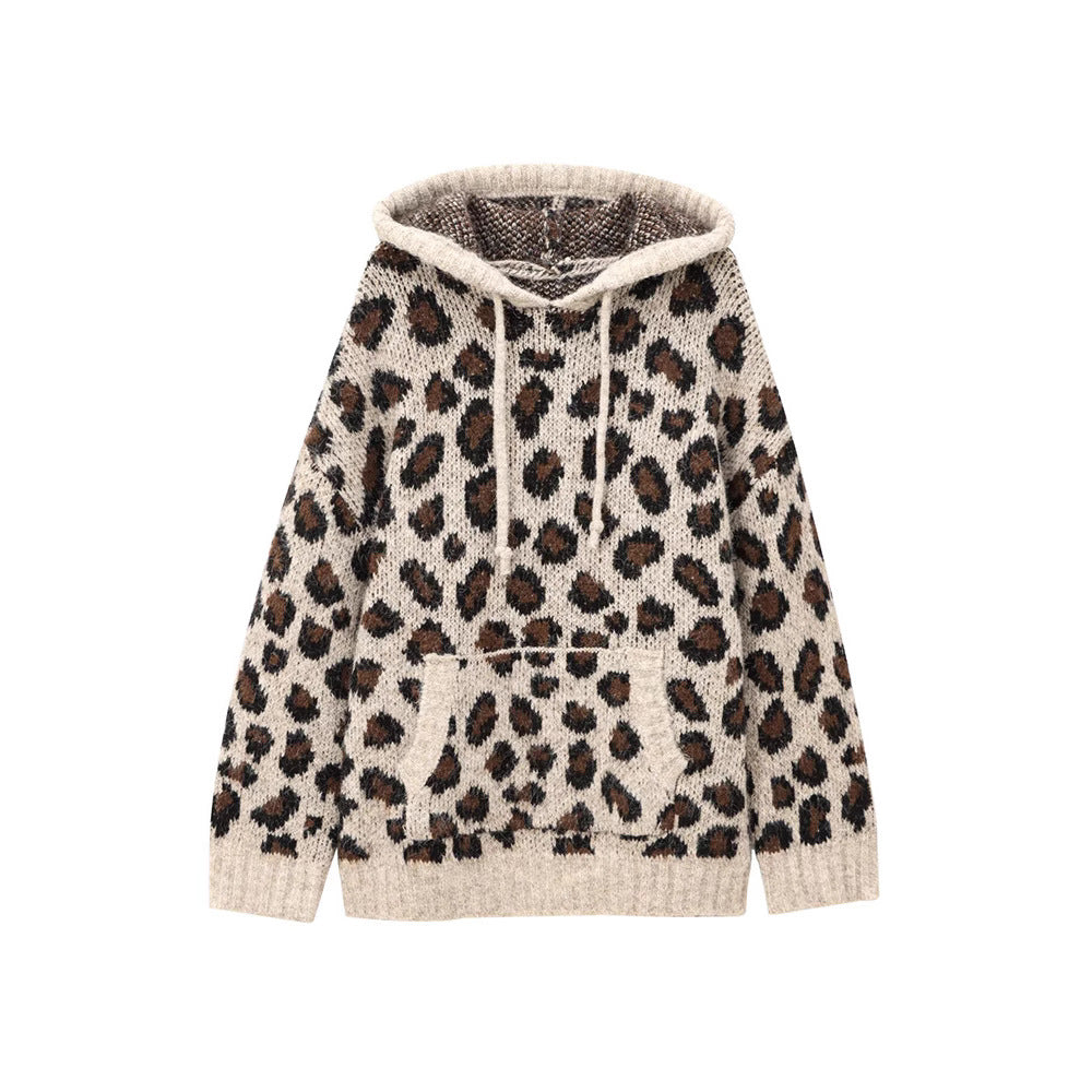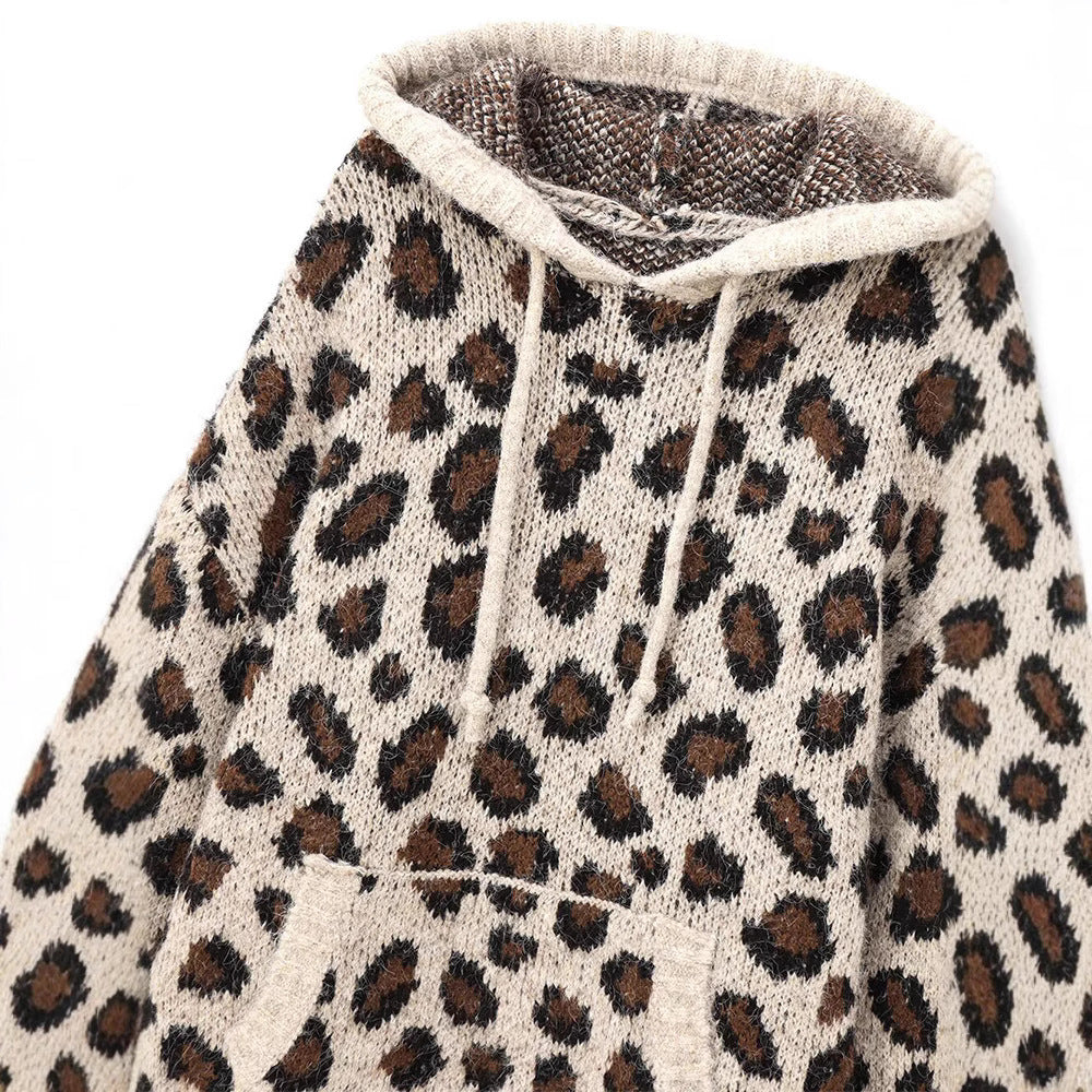 Damska bluza z kapturem w wzór lamparta z praktyczną kieszenią kangurzą Eloura-Moda