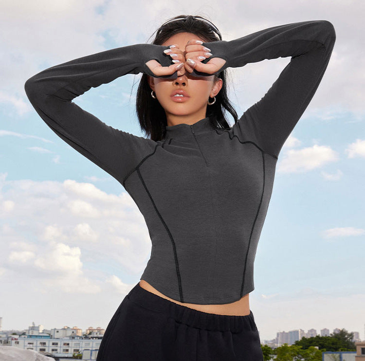 Damska bluzka funkcyjna z wysokim kołnierzem i otworami na kciuki Eloura-Moda